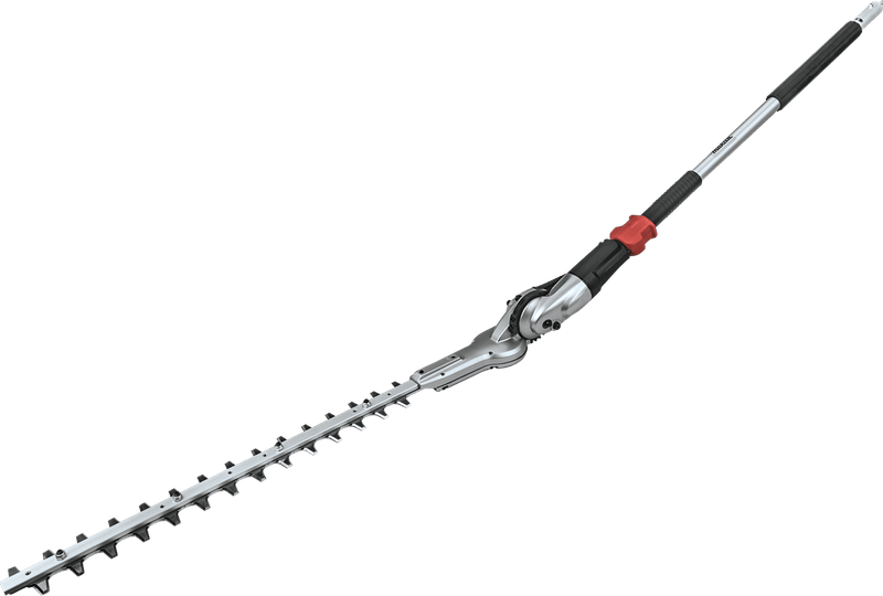 Navaja de 20" de doble filo con 13 ajustes de ángulo para eficiente corte elevado y setos de bajo nivel