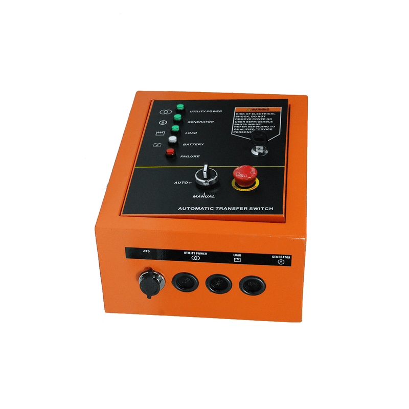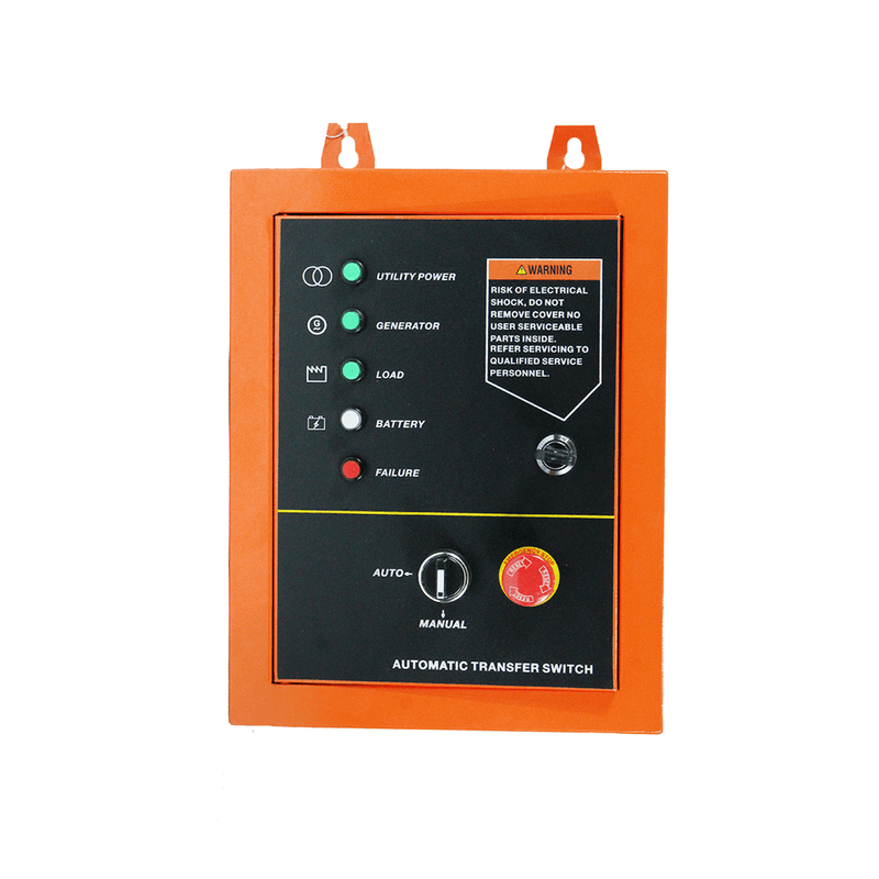 ATS para generadores a gasolina cod.82HYG7750E, 82HYG9250E, 82HYG11050E, 82ATS3000RPM Hyundai, con voltaje nominal de 230/400 V, corriente nominal de 25/50 A, 4 polos, voltaje de bobina de funcionamiento de 230/400 V y coltaje de aislamiento nominal de 690 V.