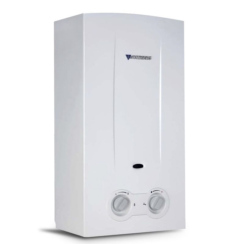 Calefón Ionizado 10 L Gas Licuado Hydrobattery-Smart C Junkers, con litraje de 10 litros, cámara abierta y caudal de arranque de 4 l/min.