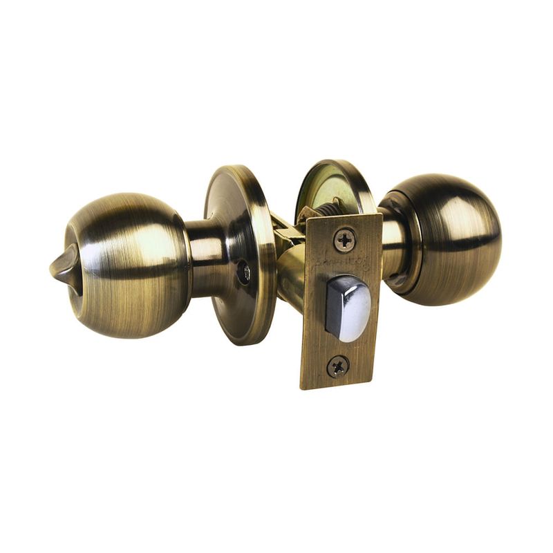 Cerradura Baño Dormitorio Pomo C/Seguro AA44+BE Andeslock modelo bola para baño, con seguro por dentro y ranura de emergencia por fuera en acabado bronce envejecido.