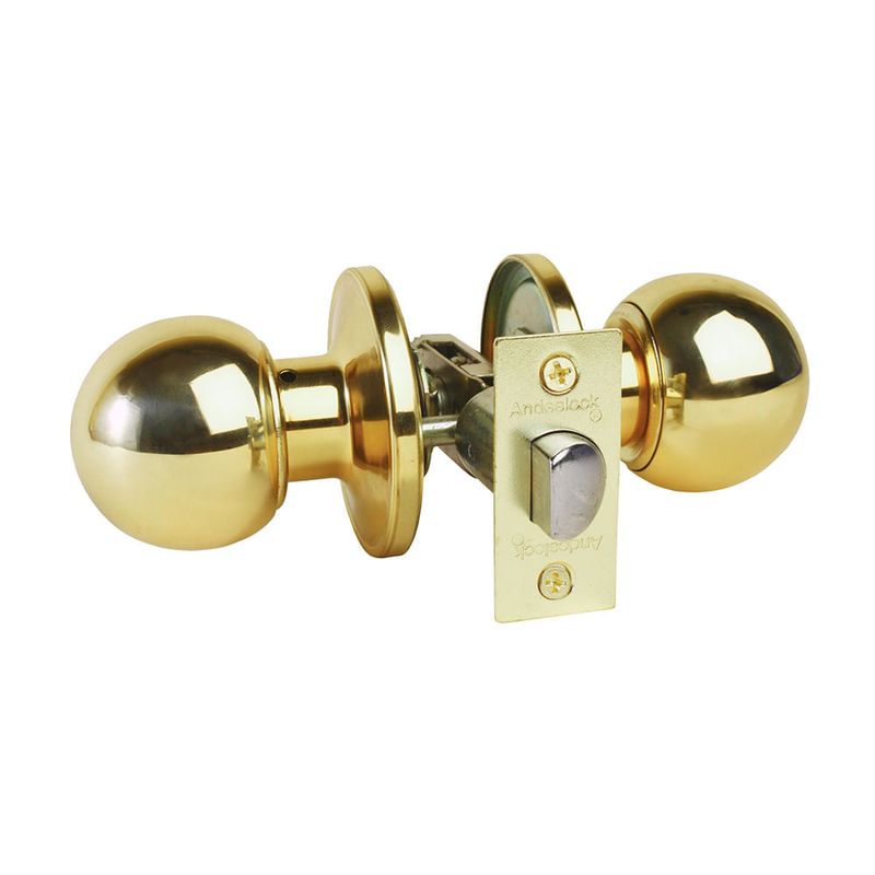 Cerradura Libre Paso AA46+BP Andeslock modeo bola para dormitorio de niños o Simple paso. En Bronce Pulido.