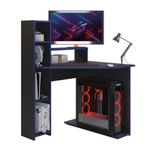 Diseñado para ávidos jugadores de computadora y fanáticos de los juegos en línea Equipado con múltiples compartimentos de almacenamiento para controladores, auriculares, parlantes, torre CPU y monitor en altura para asegurar buena visibilidad de pantalla y comodidad jugando También cuenta con mucho espacio para otros dispositivos Su amplia superficie no solo se puede usar para disfrutar de los juegos en línea, sino también para usar como una cómoda estación de trabajo