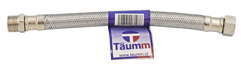 Flexible Agua Calefont Hi-He 1/2" 25 Cm Taumm, gran paso de caudal. Tuercas e insertos de latón, malla de acero inoxidable.
