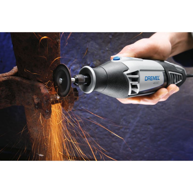 Contenido | 1 Dremel 4000, 1 maletín con 1 guía de corte, 1 adaptador empuñadura para detalle (modelo A577), 1 tripa eje flexible (modelo 225) y 1 estuche de accesorios con 1 fresa de grabado de punta cuadrada de 1,6mm para madera, metal, cuero, plástico, goma y cartón (modelo 109), 1 fresa de tallado de punta redonda de 3,2mm para madera, metal, cuero, plástico, goma y cartón (modelo 191), 4 discos de corte de 23,8mm espesor de 1mm para metal (modelo 420), 3 discos reforzados de corte para duración superior de 31,8mm espessor de 1,1mm para metal (modelo 426), 1 broca de corte de 3,2mm para madera, plástico, fibra de vidrio, drywall, yeso, laminado y aluminio (modelo 561), 1 disco de esmerilado de 22,2mm para metal, soldadura, remache y oxidácion (modelo 541), 1 piedra formato cuadrado de esmerilado de 15,9mm para metal, soldadura, remache y oxidácion (modelo 8193), 1 piedra formato pera de esmerilado de 4,8mm para vidrio, piedra, cerámica, aluminio y cobre y grabado em vidrio (modelo 84922), 1 piedra formato cuadrado de esmerilado de 9,5mm para metal, soldadura, remache y oxidácion (modelo 932), 1 cepillo de cerdas de nylon de 19,1mm para limpiar y pulir platería, joyas y metales preciosos (modelo 403), 1 cepillo de acero carbono de 19,1mm para remoción de oxidación y componentes eléctricos (modelo 428), 1 mandril vástago adaptador de lijado de 12,7mm con tubo de lija de grano grueso para madera, fibra de vidrio, plástico y goma (modelo 407), 4 tubos de lija de 12,7mm de grano grueso para madera, fibra de vidrio, plástico y goma (modelo 408), 4 tubos de lija de 12,7mm de grano medio para madera, fibra de vidrio, plástico y goma (modelo 432), 2 tubos de lija de 12,7mm de grano fino para madera, fibra de vidrio, plástico y goma (modelo 445), 2 discos de lija de 19,1mm de grano grueso para madera y remoción de pintura (modelo 411), 2 discos de lija de 19,1mm de grano medio para madera y remoción de pintura (modelo 412), 2 discos de lija de 19,1mm de grano fino para madera y remoción de pintura (modelo 413), 1 broca de acero rápido de 3,2mm para madera, plástico, oro, bronce, latón y aluminio (modelo 150), 1 mandril vástago adaptador para discos (modelo 402), 1 boquilla de 2,4mm para Herramienta Multipropósitos (modelo 481), llave y manual |