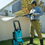 Hidrolavadora 1.800W 120Bar 420 HW1200 Makita, función de autoabastecimiento, se puede abastecer desde manguera o desde una cubeta o tanque de agua (a 1m de distancia).