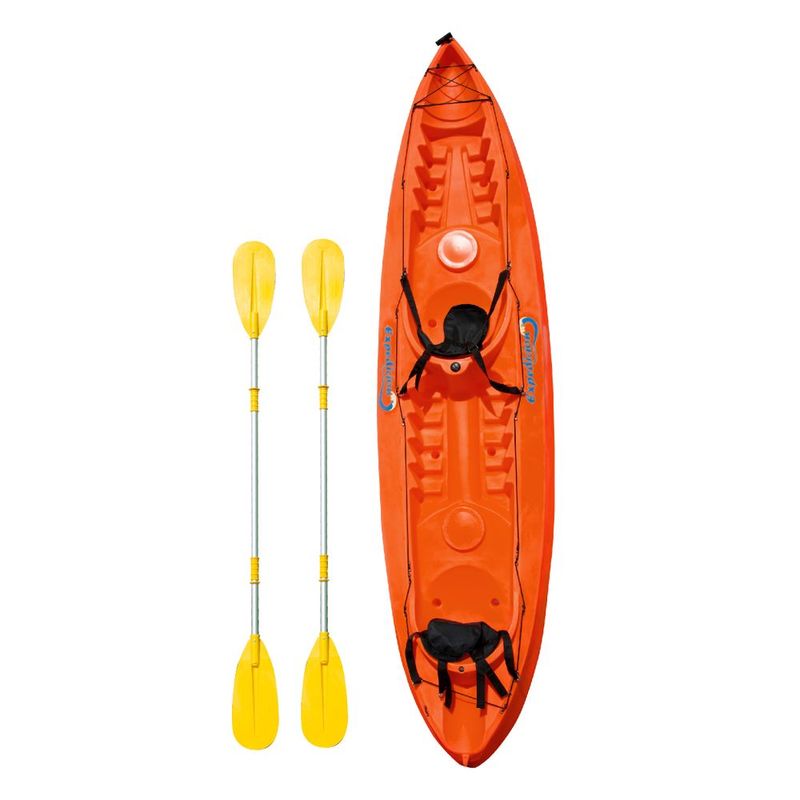 El kayak modelo explorador es una embarcación para dos personas, de propósito recreacional y puede transportar dos adulto o dos niños.
