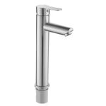 El Monomando Lavatorio Alto Modern Inox Taumm ofrece funcionalidad con su manilla para controlar el flujo y temperatura del agua.