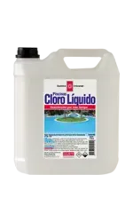 El cloro líquido para piscina, elaborado a base de hipoclorito de sodio 55 g/L, es un líquido transparente de color amarillo claro, ideal para la limpieza y desinfección del agua.