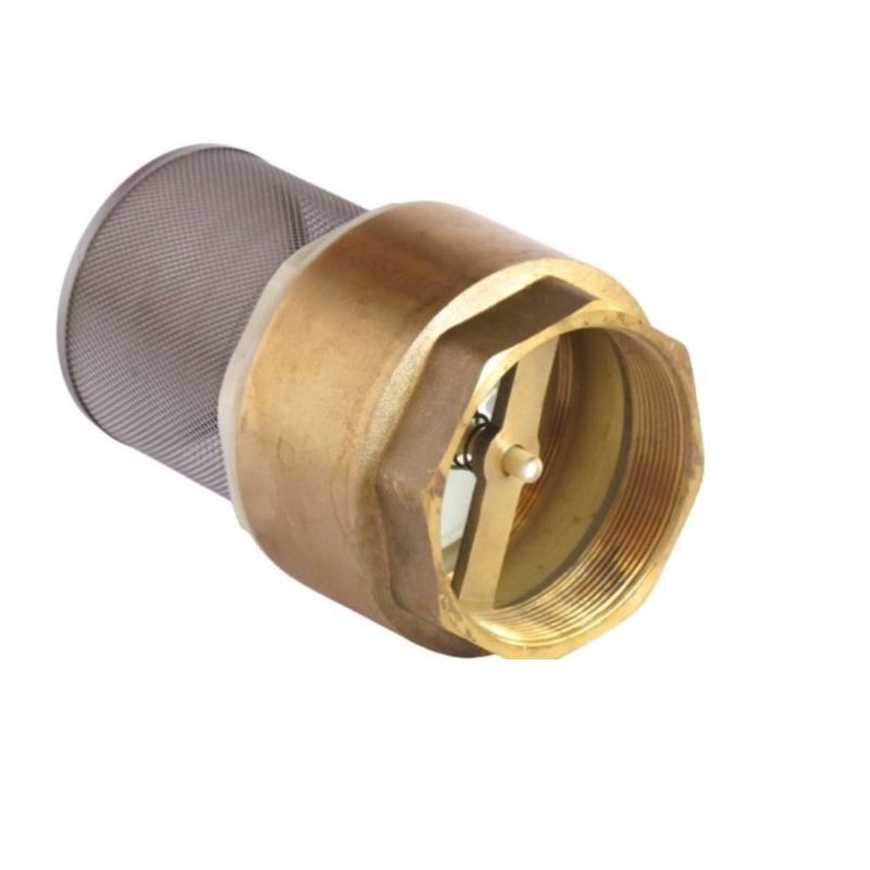 Válvula Fondo (Pie) Con Filtro Acaro Inoxidable 3 Taumm, válvula de pie o retención con estructura de bronce, embolo plástico y filtro, rejilla de acero inoxidable.